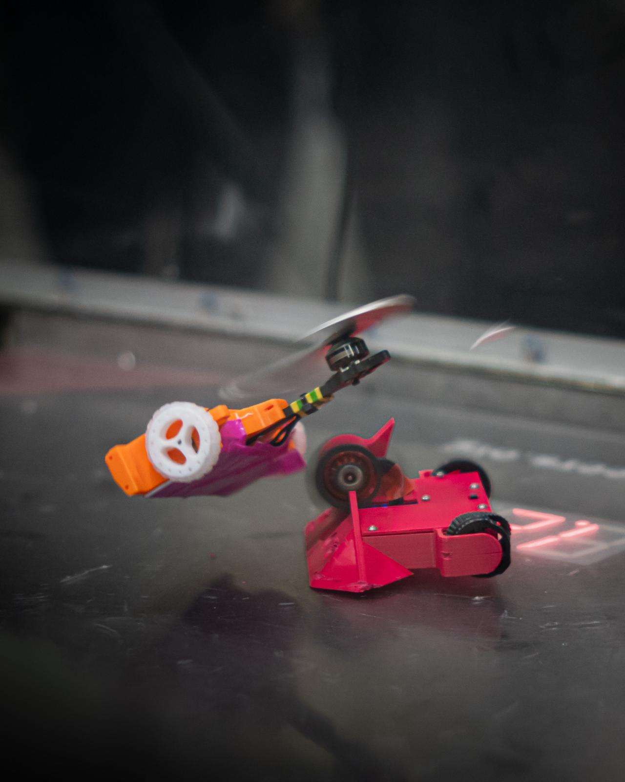 Robot Combat, also ein Roboter-Kampf, ist ein sicherer, inklusiver, freundlicher und etwas chaotischer Sport, bei dem Konstrukteure Roboter steuern, die mit innovativen Waffen und ausgeklügelten Verteidigungssystemen ausgestattet sind.