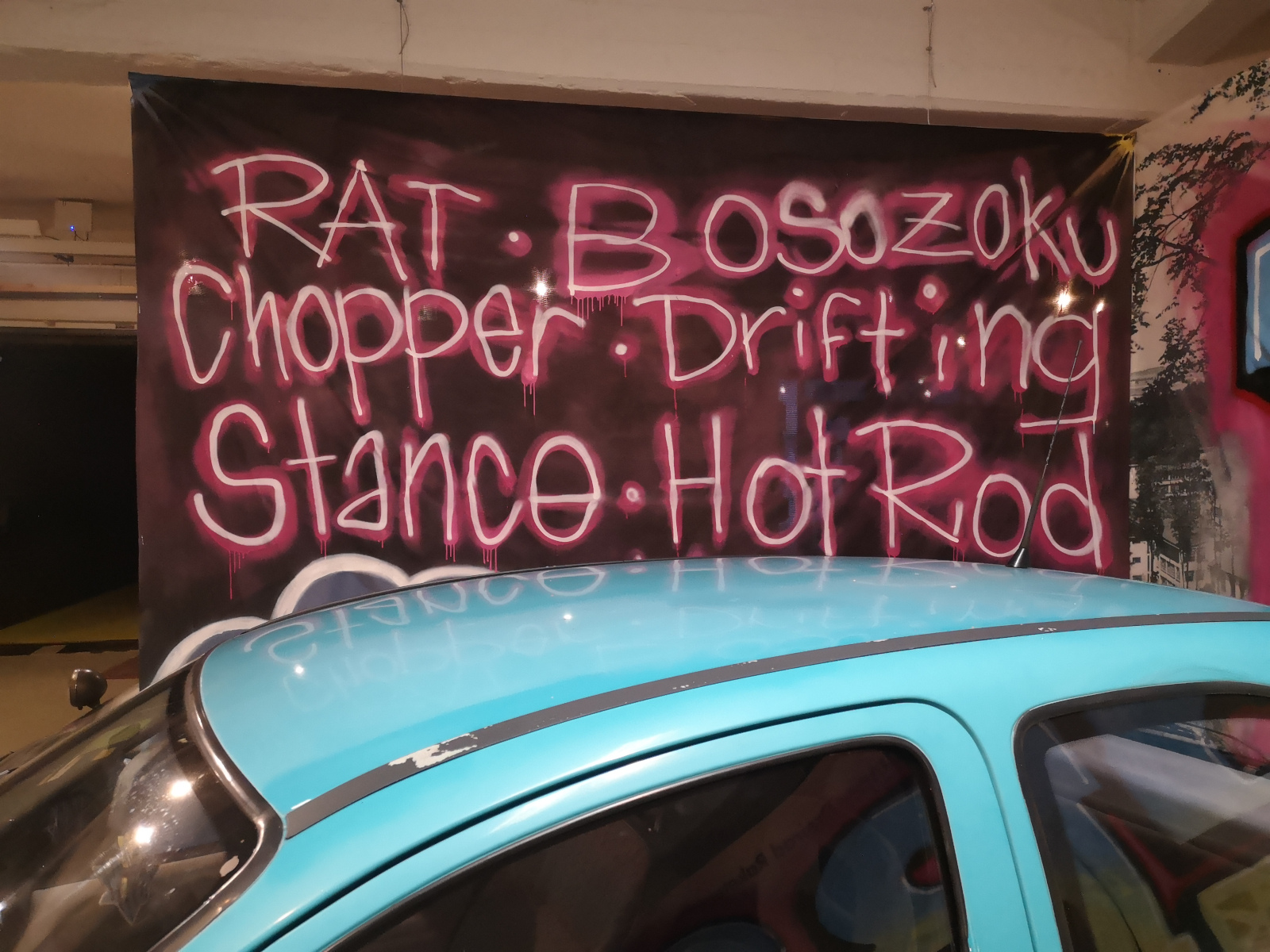 What the Bosozoku were mainly on two wheels, the Kaido Racer are on four. Emerging in Japan in the 1980s, they transform ordinary cars into rolling works of the art of exaggeration: meter-long front spoilers, dazzling colours, exhaust pipes like organ pipes and lettering reminiscent of fighter jets. These vehicles are loud, absurd, and full of symbolism. Kaido Racers (literally: »Highway-Racers«) are inspired by the street racing scene and anime aesthetics. Their outings are no races – they are art performances where owners present themselves as outsiders in a country that loves order. Their cars scream, »I exist!« What might appear like caricature is a serious art form. It combines rebellion, pride, and craftsmanship —a kind of mobile pop culture between chaos and control.